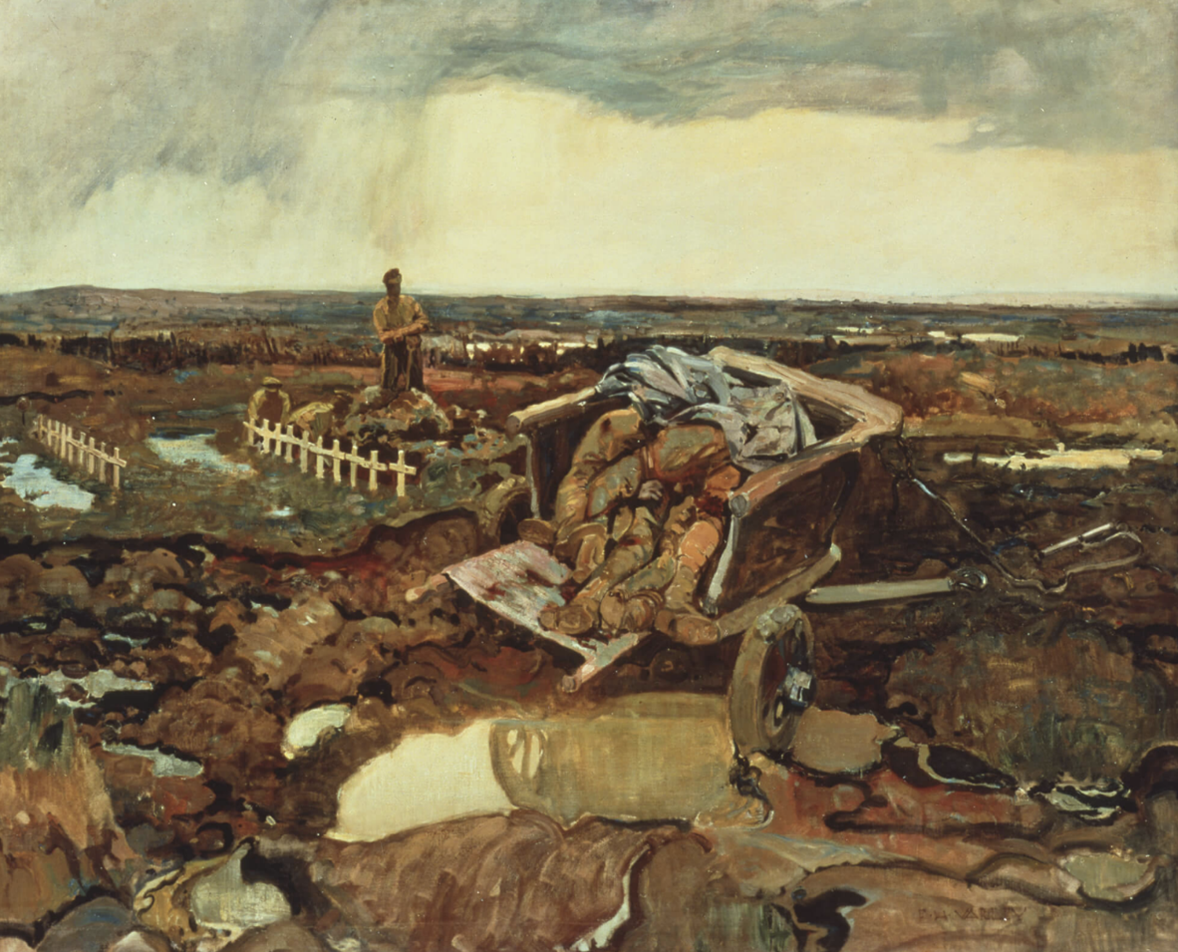His war art is autobiographical and depicts the perspective of the purpose and brutality of the war from the perspective of a veteran. His work shows the war as having been destructive and depressing. Dix created works showing absolute brutality. Similar to Varley his work questioned what any of the fighting was worth, a sentiment shared by all sides at the end of a war which ultimately changed little. Capturing the death he witnessed and potentially took part in bringing to others, Dix’s art is inherently anti-war, showing it as a purposeless mess of mud, blood and firepower.[7]